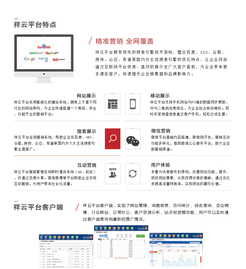 8、實現三網合一、打通PC端、Web端、微信端,讓企業實現一站式營銷;